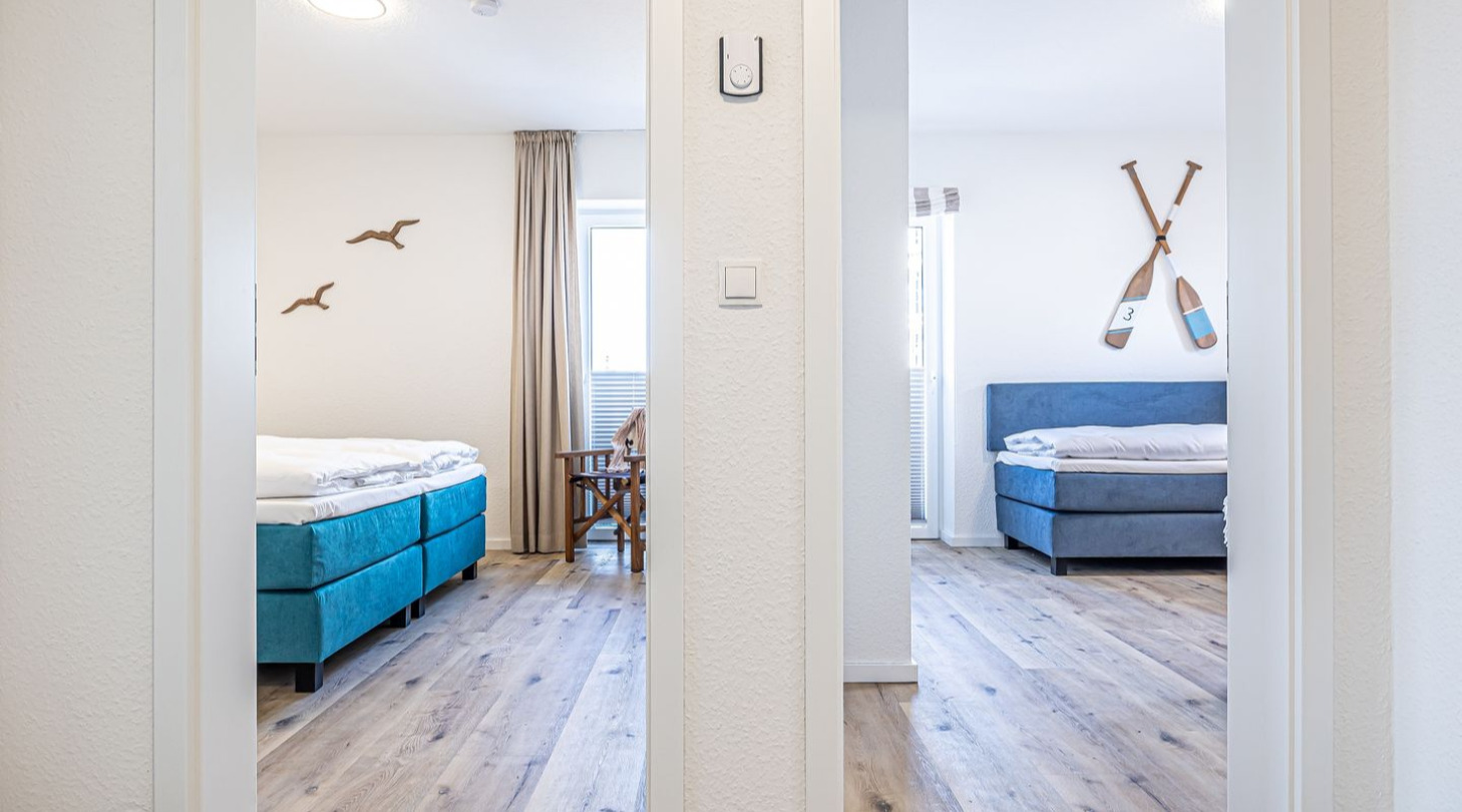 With a direct view of the water and in a unique location directly on the Schlei, “Fjord berth 3” at Pionierhafen Schleswig is the perfect place for your vacation. The modern apartment offers a spacious living area of 71 m², 2 bedrooms and a bathroom, as well as a balcony with a fantastic view of the Schlei. The fully equipped kitchen leaves nothing to be desired and in the living room you can end your vacation days on the sofa in front of the Smart TV. One bedroom offers a cozy double bed (180x200cm) and blackout options for restful nights. The other bedroom has two single beds (90x200cm each) and blackout options. You can relax on the balcony and round off your vacation days on balmy evenings. You have your own parking space directly in front of the house. You can store your bicycles in the open, shared bicycle room. There is a washing machine on the first floor for communal use free of charge. Sustainability is important at Pionierhafen, which is why 77% of the energy is supplied by geothermal energy.