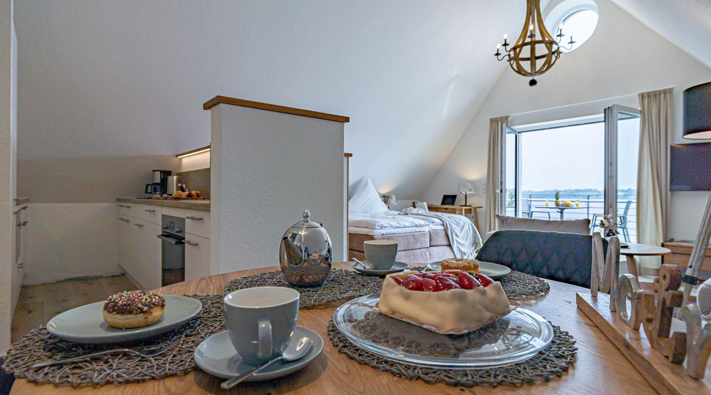 Culinary delights are provided by cafés, bistros and restaurants directly on the harbor and in the immediate vicinity. Whether it's a champagne breakfast, freshly baked cakes and tarts, delicious fish sandwiches, homemade ice cream or a creative burger - there's something for every taste and often a great view of the Schlei for free. Schleswig is a city of culture and you are right in the middle of it all at the harbor. Watch the hustle and bustle at the harbor or enjoy the beautiful weather on a boat trip on the Schlei. Gottorf Castle, the old Viking settlement of Haitabu, Schleswig Cathedral with the famous Brüggemann Altar and the fishing settlement of Holm are nearby excursion destinations. There is a family amusement park in nearby Tolk, which offers fun for the whole family! The neighboring towns of Flensburg, Kappeln, Husum and Rendsburg are just as easy to experience as tours to the beaches of the Baltic Sea coast and the dunes of the North Sea in Sankt-Peter-Ording.