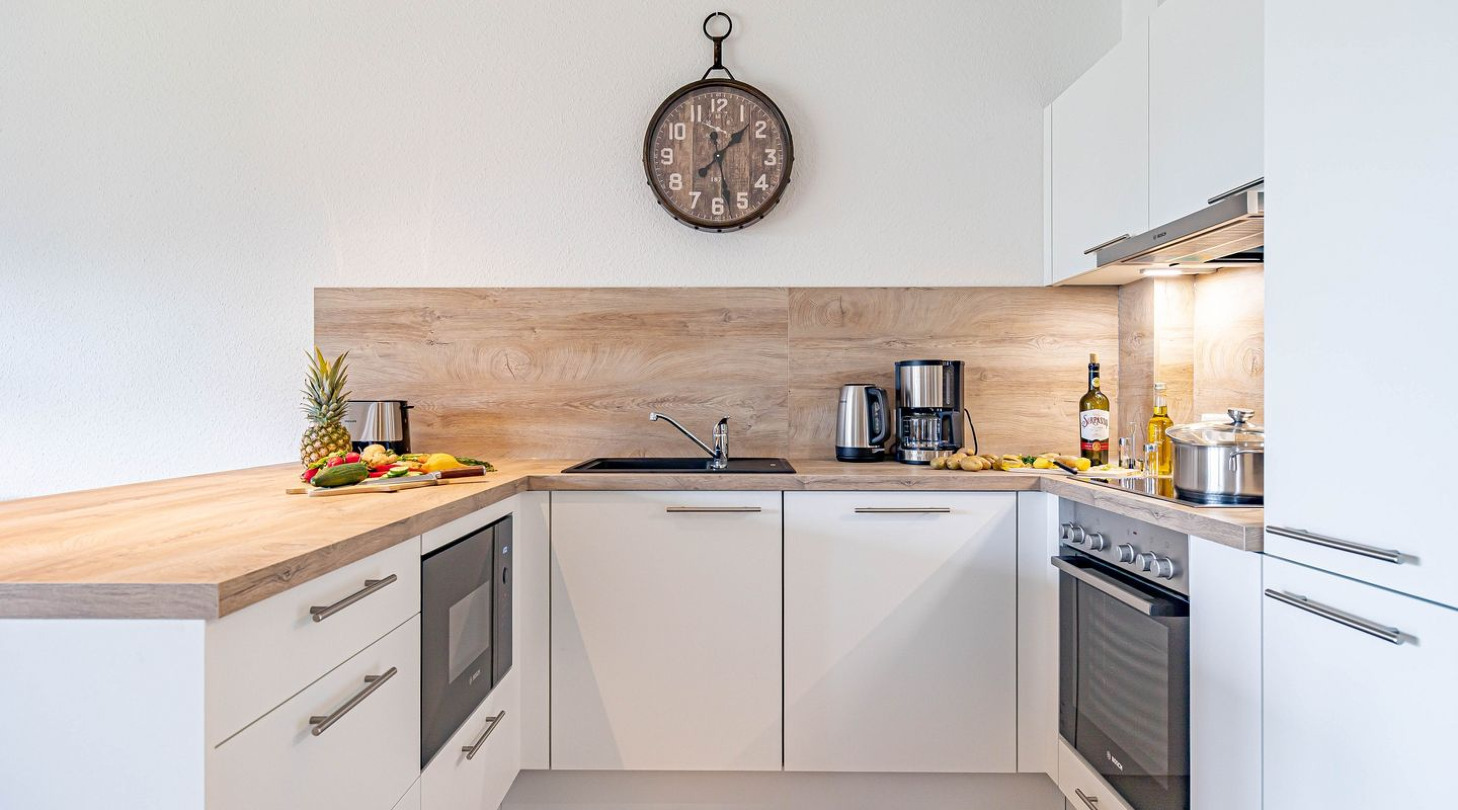 With a direct view of the water and in a unique location directly on the Schlei, the “Viking berth 1” at the Pionierhafen Schleswig offers the perfect place for your vacation. The 116m² apartment offers an open-plan living and dining area with kitchen, three bedrooms, two bathrooms and a terrace. The fully equipped kitchen leaves nothing to be desired and in the living room you can end your vacation days on the sofa in front of the Smart TV. Two of the three bedrooms each offer a comfortable double bed (180x200cm), as well as blackout options for restful nights. One bedroom has a flat-screen TV. The third bedroom has two single beds (90x200cm each) and blackout facilities. In one of the two bathrooms you will find a hairdryer and a shower. And the absolute highlight: a Finnish sauna! Here you can warm up and relax after long walks on the beach. The second bathroom also has a shower. You can relax on the terrace and end your vacation days in a beach chair on warm evenings. A private parking space is available directly in front of the house. You can store your bicycles in the open, shared bicycle room. On the first floor of the neighboring houses Fjord- and Schleikojen there is a washing machine for shared use free of charge. Sustainability is important at Pionierhafen, which is why 77% of the energy is supplied by geothermal energy.