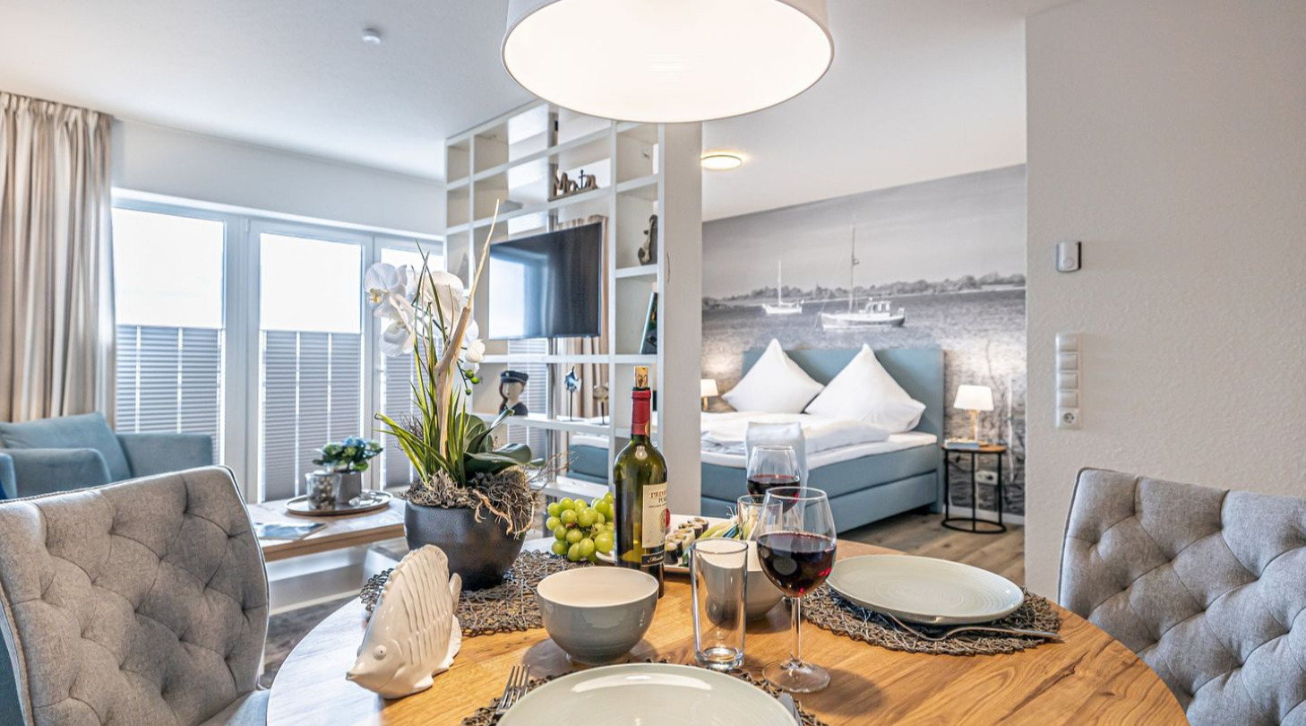 Culinary delights are provided by cafés, bistros and restaurants directly on the harbor and in the immediate vicinity. Whether it's a champagne breakfast, freshly baked cakes and tarts, delicious fish sandwiches, homemade ice cream or a creative burger - there's something for every taste and often a great view of the Schlei for free. Schleswig is a city of culture and you are right in the middle of it all at the harbor. Watch the hustle and bustle at the harbor or enjoy the beautiful weather on a boat trip on the Schlei. Gottorf Castle, the old Viking settlement of Haitabu, Schleswig Cathedral with the famous Brüggemann Altar and the fishing settlement of Holm are nearby excursion destinations. There is a family amusement park in nearby Tolk, which offers fun for the whole family! The neighboring towns of Flensburg, Kappeln, Husum and Rendsburg are just as easy to experience as tours to the beaches of the Baltic Sea coast and the dunes of the North Sea in Sankt-Peter-Ording.
