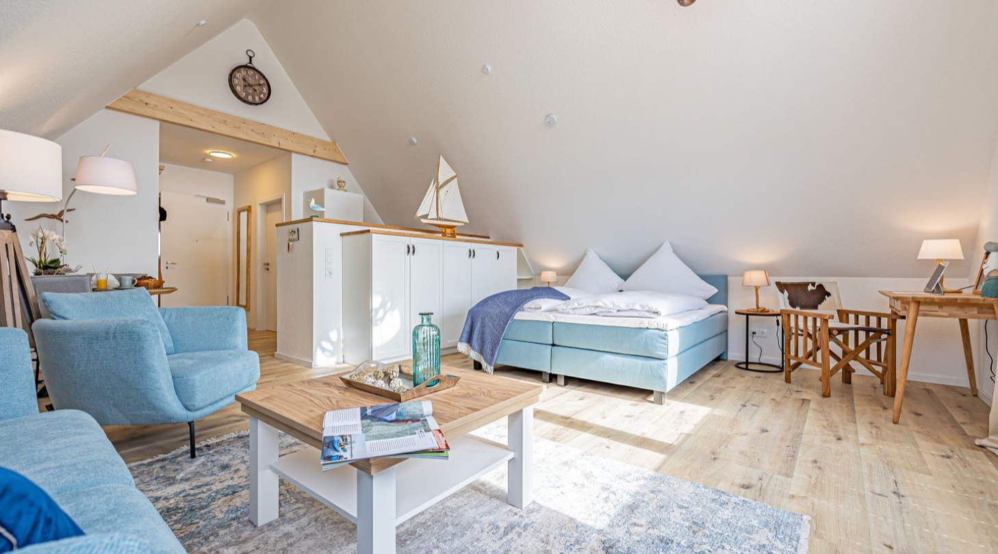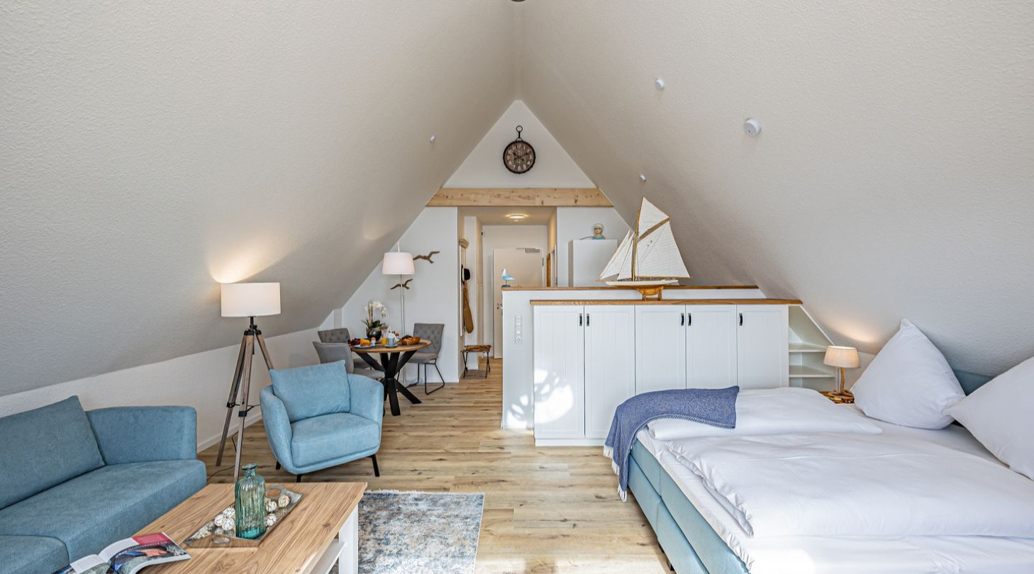 Culinary delights are provided by cafés, bistros and restaurants directly on the harbor and in the immediate vicinity. Whether it's a champagne breakfast, freshly baked cakes and tarts, delicious fish sandwiches, homemade ice cream or a creative burger - there's something for every taste and often a great view of the Schlei for free. Schleswig is a city of culture and you are right in the middle of it all at the harbor. Watch the hustle and bustle at the harbor or enjoy the beautiful weather on a boat trip on the Schlei. Gottorf Castle, the old Viking settlement of Haitabu, Schleswig Cathedral with the famous Brüggemann Altar and the fishing settlement of Holm are nearby excursion destinations. There is a family amusement park in nearby Tolk, which offers fun for the whole family! The neighboring towns of Flensburg, Kappeln, Husum and Rendsburg are just as easy to experience as tours to the beaches of the Baltic Sea coast and the dunes of the North Sea in Sankt-Peter-Ording.