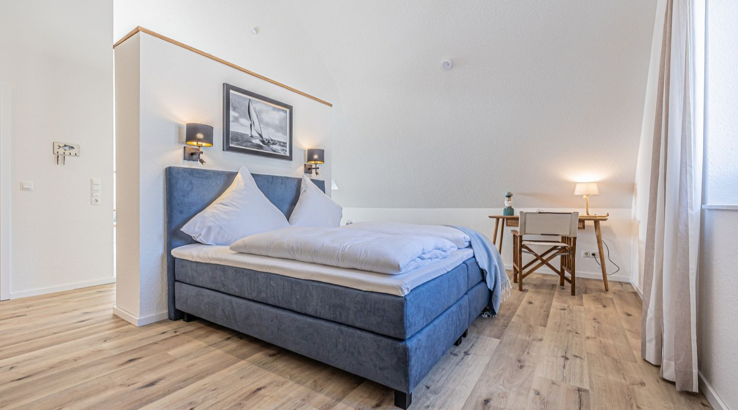 Culinary delights are provided by cafés, bistros and restaurants directly on the harbor and in the immediate vicinity. Whether it's a champagne breakfast, freshly baked cakes and tarts, delicious fish sandwiches, homemade ice cream or a creative burger - there's something for every taste and often a great view of the Schlei for free. Schleswig is a city of culture and you are right in the middle of it all at the harbor. Watch the hustle and bustle at the harbor or enjoy the beautiful weather on a boat trip on the Schlei. Gottorf Castle, the old Viking settlement of Haitabu, Schleswig Cathedral with the famous Brüggemann Altar and the fishing settlement of Holm are nearby excursion destinations. There is a family amusement park in nearby Tolk, which offers fun for the whole family! The neighboring towns of Flensburg, Kappeln, Husum and Rendsburg are just as easy to experience as tours to the beaches of the Baltic Sea coast and the dunes of the North Sea in Sankt-Peter-Ording.