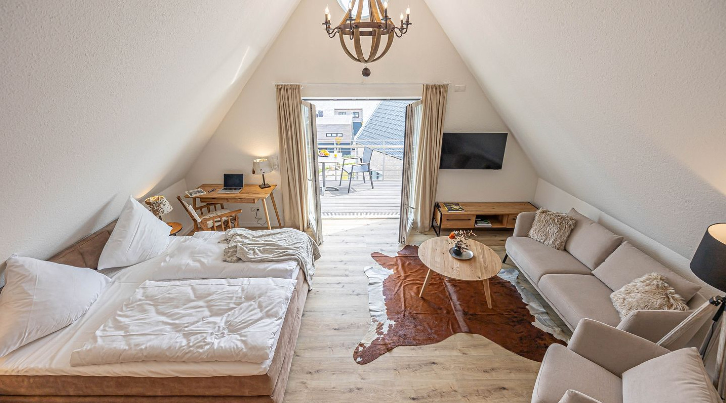 Culinary delights are provided by cafés, bistros and restaurants directly on the harbor and in the immediate vicinity. Whether it's a champagne breakfast, freshly baked cakes and tarts, delicious fish sandwiches, homemade ice cream or a creative burger - there's something for every taste and often a great view of the Schlei for free. Schleswig is a city of culture and you are right in the middle of it all at the harbor. Watch the hustle and bustle at the harbor or enjoy the beautiful weather on a boat trip on the Schlei. Gottorf Castle, the old Viking settlement of Haitabu, Schleswig Cathedral with the famous Brüggemann Altar and the fishing settlement of Holm are nearby excursion destinations. There is a family amusement park in nearby Tolk, which offers fun for the whole family! The neighboring towns of Flensburg, Kappeln, Husum and Rendsburg are just as easy to experience as tours to the beaches of the Baltic Sea coast and the dunes of the North Sea in Sankt-Peter-Ording.